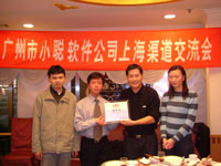 一、會議時間: 2003年11月19日 二、地點:上海 三、會議內(nèi)容: 2003年11月19日下午,小聰軟件作為廣州軟件行業(yè)的代表,與上海軟件行業(yè)的代表在上海成功召開了兩地軟件渠道交流會。   會議上氣氛熱烈,大家就軟件行業(yè)的發(fā)展、渠道政策、進行了熱烈的討論,并對上海當?shù)氐能浖袠I(yè)市場進行了分析和交流,會議并討論了以后加強兩地軟件行業(yè)的合作前景和方式。   當天,上海貿(mào)立公司成為小聰軟件在上?偞。并進行了正式授牌儀式。大家在對小聰軟件最新發(fā)布的小聰OA、小聰ERP和小聰PDA餐飲無線點菜系統(tǒng)進行充分肯定,同時表示非常看好小聰軟件產(chǎn)品線在華東地區(qū)市場的發(fā)展。 向小聰軟件上?偞恚荷虾YQ(mào)立公司毛總經(jīng)理頒發(fā)授權(quán)牌 2003.11.24 From JXCSOFT GuangZhou