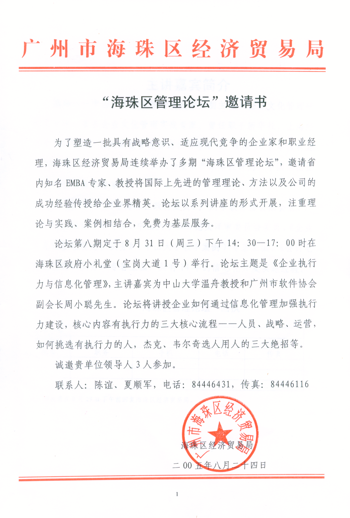 8月31日下午14:30-17:00在海珠區(qū)政府小禮堂舉行"企業(yè)執(zhí)行力與信息化管理"論壇,你想學(xué)習(xí)國際上先進的管理理論、方法及經(jīng)驗嗎?想知道企業(yè)如何通過信息化管理加強執(zhí)行力建設(shè)嗎?答案就在其中。