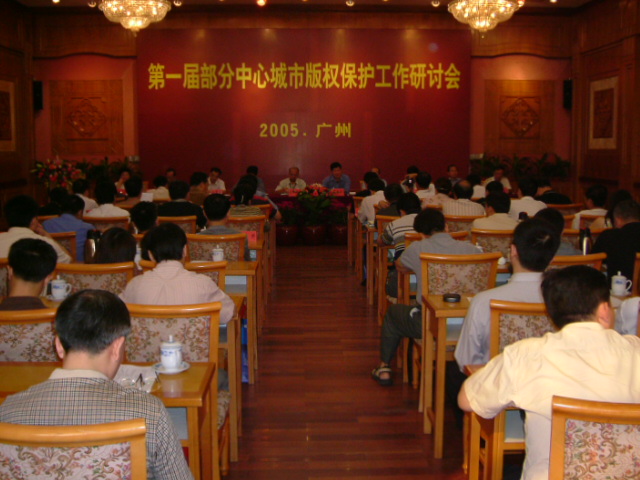 2005年10月10日至12日由廣州市版權(quán)局主辦的第一屆部分中心城市版權(quán)保護(hù)工作研討會(huì)在廣州珠島賓館召開。