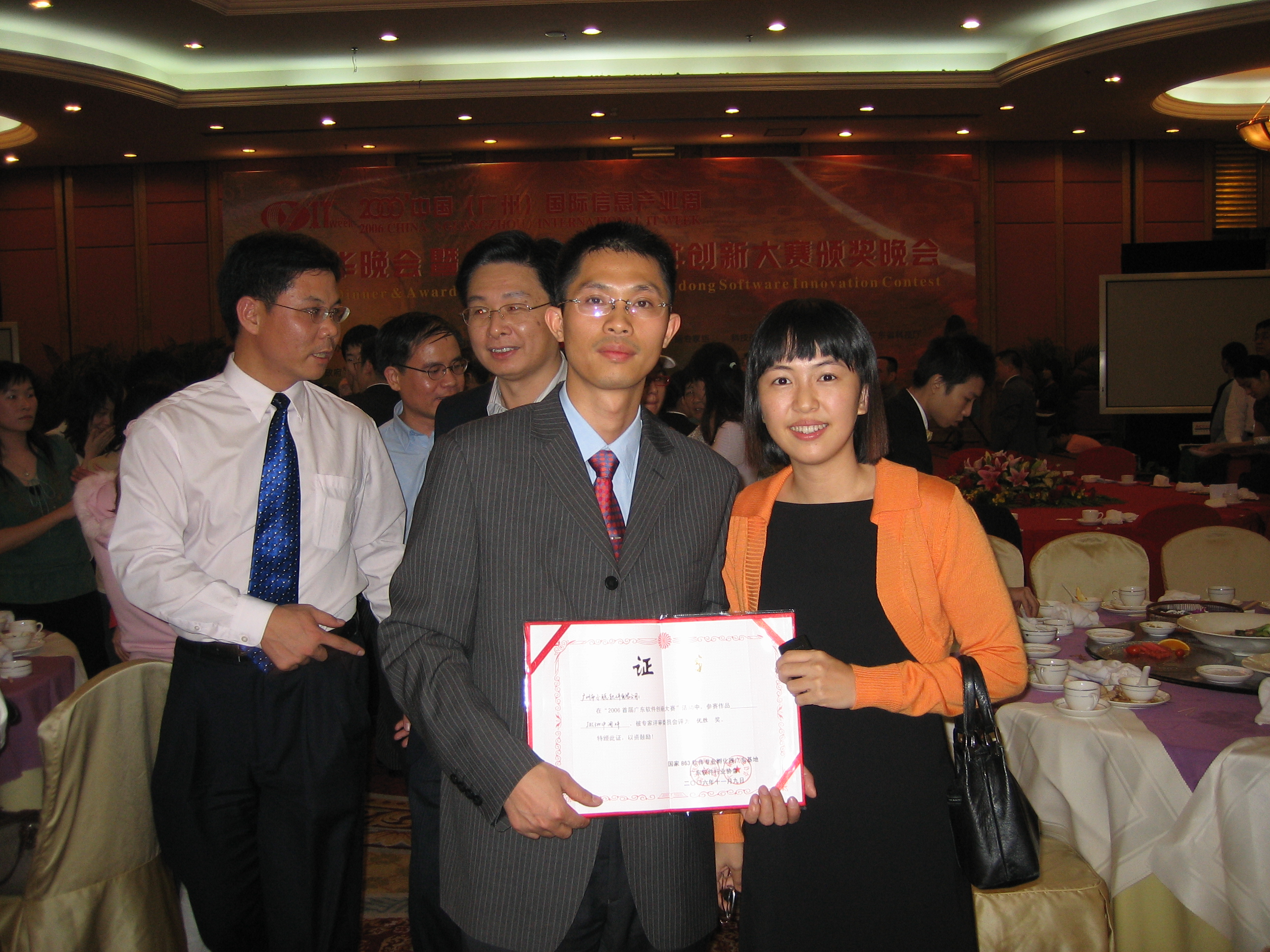 11月9日在亞洲國(guó)際大酒店舉行了2006中國(guó)[廣州]國(guó)際信息產(chǎn)業(yè)周嘉年華暨首屆廣東軟件創(chuàng)新大賽頒獎(jiǎng)晚會(huì),國(guó)家、省、市領(lǐng)導(dǎo)、中國(guó)行業(yè)軟件網(wǎng)、廣東省信息產(chǎn)業(yè)廳、廣州市信息化辦公室領(lǐng)導(dǎo)以及全國(guó)IT業(yè)的專家代表出席了此次頒獎(jiǎng)晚會(huì)。在此次創(chuàng)新大賽中廣州市小聰軟件有限公司的“JXC3W中間件”,經(jīng)專家評(píng)審委員會(huì)認(rèn)定,獲得了國(guó)家863廣東首屆軟件創(chuàng)新大賽優(yōu)勝獎(jiǎng)。