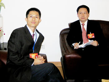 人大會(huì)上姚弈生區(qū)長(zhǎng)和小聰親切交談