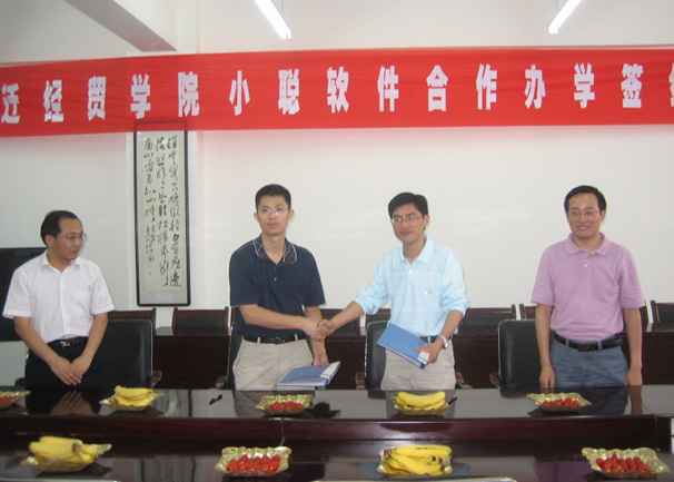 2008年7月小聰軟件和宿遷經(jīng)貿(mào)學(xué)院簽定合作辦學(xué)協(xié)議