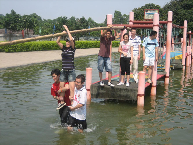 拓展訓(xùn)練時而考驗(yàn)我們的平衡性和協(xié)作性,時而考驗(yàn)我們的耐性和膽量;時而考驗(yàn)我們在面對困難和危機(jī)時的勇氣和信心!這次活動使整個團(tuán)隊(duì)的默契和協(xié)作能力得到很大的提高,同時增強(qiáng)了彼此間的信任和聯(lián)系。尤其是下午的水上項(xiàng)目,一些隊(duì)員很快地落水了,但他們甘于奉獻(xiàn),用自己的身體護(hù)送著團(tuán)隊(duì)中的每一個人到達(dá)終點(diǎn),這無不表現(xiàn)“犧牲”自己,成就團(tuán)隊(duì)的忘我和付出的精神!