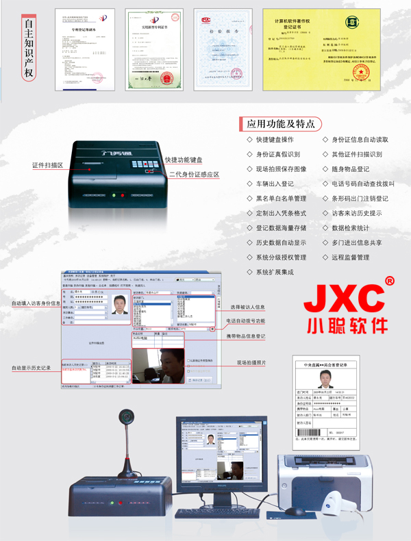 “JXC門務通”訪客登記系統(tǒng)充分利用現(xiàn)代化信息技術,真正做到人員、證件、照片三者統(tǒng)一。實現(xiàn)“進門登記、出門注銷、人像對應、隨身物品登記、分級管理、歷史記錄查詢、報表匯總”等功能。使用該系統(tǒng)后,通過人防和技防相結合,重點加強單位來訪賓客有序管理,提升單位門衛(wèi)工作效率和服務品質。該系統(tǒng)廣泛應用于政府、企業(yè)、學校等人員往來登記的實時管理。