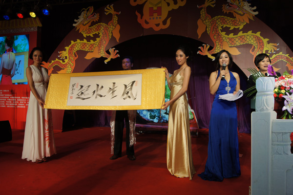 2010年9月12日下午,由廣東珠海慈善總會主辦,廣東東莞友華奇石館承辦、珠海御獒園、茶馬論道亞州管理有現(xiàn)公司。中國風(fēng)水書畫研究院等單位協(xié)辦的‘情系災(zāi)區(qū)慈善拍賣會’在東莞橫瀝鎮(zhèn)友華奇石館隆重舉行!由湖南籍著名書法家、國家一級美術(shù)師兼小聰軟件有限公司高級顧問梁和生教授書寫的風(fēng)水書法‘風(fēng)生水起’四個字,經(jīng)過十幾輪的激烈竟價,最后以10萬零8千元由到場的四百多名嘉賓中的八十八號嘉賓競拍成交。 梁和生所寫書法把中國傳統(tǒng)文化國學(xué)易經(jīng)成功融入每一筆每個字,豎有陰橫為陽,起筆為陰行筆為陽,陰陽和諧,非常好看,獲國家正式命名為‘風(fēng)水書法’,受國家版權(quán)保護(hù)。梁和生的代表作‘梅花香自苦寒來’2007年曾在安徽拍出七萬助學(xué)金。胡錦濤主席的情系玉樹講話‘新家園會有的 新校園會有的’梁和生用風(fēng)水書法所寫2010年春在珠海拍出九萬元慈善欵,很多人認(rèn)為風(fēng)水書法是用排筆所寫,其實是特制的名貴的藏毫筆所寫。 梁和生表示:無論何時何地所拍慈歀自己一分不會要,全捐。
