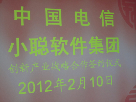 2012年2月10日,中國電信與小聰軟件集團(tuán)創(chuàng)新產(chǎn)業(yè)戰(zhàn)略合作正式簽約。雙方經(jīng)友好協(xié)商,決定建立戰(zhàn)略合作伙伴關(guān)系,攜手共進(jìn)。 雙方的合作內(nèi)容包括:小聰產(chǎn)業(yè)園所有應(yīng)用業(yè)務(wù)、信息化推廣、云應(yīng)用、虛擬主機(jī)應(yīng)用、網(wǎng)眼設(shè)備推廣等。