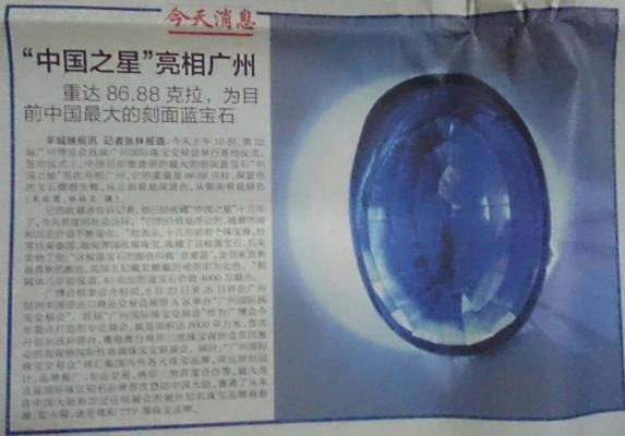 情讓中國最大刻面藍(lán)寶石“中國之星”