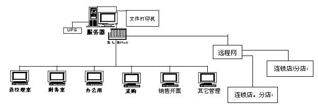 上圖為一個(gè)完整的局域網(wǎng)絡(luò)系統(tǒng)的基本架構(gòu)。當(dāng)然單機(jī)上也可以完成要做的所有事情,不過只能在一臺(tái)機(jī)上使用而已。另外,我們的系統(tǒng)還可以方便地實(shí)現(xiàn)遠(yuǎn)程的互連,實(shí)現(xiàn)遠(yuǎn)程的多個(gè)部門的協(xié)同工作,以及老板的遠(yuǎn)程管理。