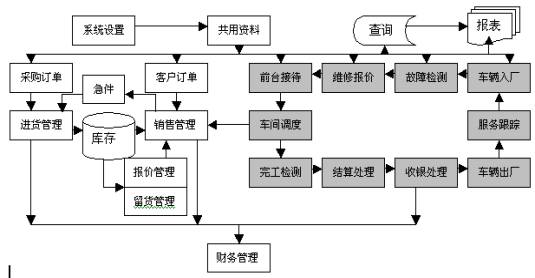 3.車輛檔案/維修項目工時費管理/前臺開單/維修車間調(diào)度/維修領(lǐng)料/返修處理/年季審統(tǒng)計與提醒/完工總檢/結(jié)算收銀/服務(wù)跟蹤 |