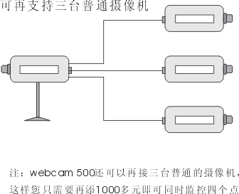 1、可以用在公司內(nèi)部,安裝管理簡單方便,并且可以再接三臺普通攝像機(jī)(webcam500)或四臺普通攝像機(jī)(webcam700) 您可以根據(jù)自己的需要隨意選配您需要的攝像機(jī),比如紅外攝像機(jī)或加帶云臺、變焦變倍鏡頭等。